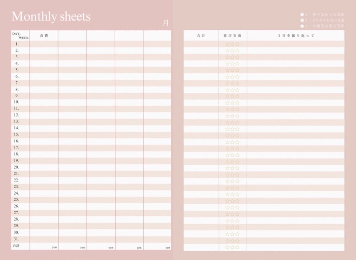 このMoney management bookを使い、支出管理、あなたのお金の概念を変えていきましょう♡